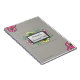 Feminine and sophisticated, this personal lined journal is conveniently sized to fit most purses and is adored with a soft grey solid background, sprinkled with dainty pink and yellow flowers surrounding a framed name plate with a custom text field for your name, journal title, whatever.