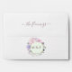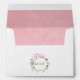 Chic pastel style blush pink floral wedding envelope with gold geometric frame.