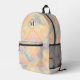 Carry your essentials in style with this chic backpack featuring a pastel marble design in peach, aqua, and lavender tones, accented with luxurious gold veins. Includes an editable initial for a personalized touch—perfect for school, travel, or everyday use. A trendy and elegant accessory for those who love unique, artistic designs.