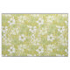 This fabric has flowers and leaves in shades of white, light green, and pale yellow.