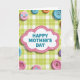 This greeting card features a cloud-shaped sign centered on a light green and white gingham background that feels cozy and homey. A scalloped border made of tiny pink dotted lines outlines the cloud, giving it a soft, affectionate frame. In the middle of the cloud, the text “HAPPY MOTHER’S DAY” appears in teal lettering, standing out clearly against the white shape. Around the edges of the card, rounded pastel circles overlap the frame like friendly little visitors, with gentle shadows that make them look slightly raised. The circles come in soft pink, pale blue, warm orange, and light purple, and a few have sweet faces—one with heart-shaped eyes ❤️, another with a calm smile, and another with a thoughtful curved mouth. Others keep things simple with a single dot or small cutout-like marks that resemble buttons or candy pieces, adding a quiet, caring touch. The lighting stays soft and even, letting the gingham pattern and the tiny details feel tender rather than sharp. Several pastel circles sit near the corners, with their drop shadows falling subtly down and to the side 🌼.