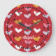 Pastel Hearts on Red Wall Clock