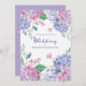 Pastel Hydrangeas Purple Wedding Invitation designed with soft shades of purple, blue and pink flowers on a white background. The front text includes: Please Join Us For The Wedding Of, and The Bride and Groom's First Names. The reverse side text includes: The Bride and Groom's Full Names, The Wedding Date, Time, Location, Address and Reception Note on a soft purple background with white text and Hydrangeas Bouquet. Be sure to view the complete Pastel Hydrangeas Wedding Collection for matching cards and accessories.