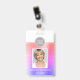 Add your own Logo Professional Corporate Work Name, Photo and Job Title Rainbow Pastel Ombre Purple and Pink Metallic ID Photo Vertical Business Badge. This design is simple and easy to use by changing your first and last name as well as your job title and business head shot.