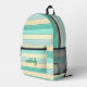 Pastel Mint and Peach Striped Trendy School Printed Backpack