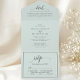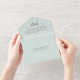 This all-in-one invitation features a pastel mint backdrop paired with a modern script font, exuding minimalist elegance. The clear and easy-to-read design ensures your guests receive all the essential information for your wedding celebration.