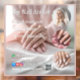 Above the hands, three enchanting circles reveal the essence of your salon’s offerings: a radiant bride showcasing her manicured elegance, a soft salmon pink manicure that whispers sophistication, and an opalescent white finish that embodies purity and grace. Each element is meticulously crafted to inspire curiosity and admiration among your clientele.