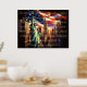 The product looks amazing but zazzle can’t ship one without bending to save their life. The first order arrived damaged, so I requested a new one - the replacement arrived damaged, so I requested a new one- the second replacement arrived damaged. Why? Because zazzle continues to ship $60 flat prints in bendable packaging that gets damaged in transit. Industry standard is RIGID packaging, but they have yet to learn from their mistakes. The print looks INCREDIBLE. Unfortunately they never arrive without multiple bends and occasionally, rips.