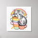 Embrace the charm of " Pastel Paws & Rainbow Sips," a delightful design featuring an adorable grey kitten nestled among a stack of colourful mugs, all set against a soft pastel rainbow. This whimsical illustration captures the essence of kawaii culture, combining soothing pastel tones with playful elements like smiling stars and buzzing bees.
