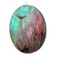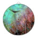 Pastel bubbles of aqua, turquoise, blue and pink and purple are a backdrop for these wispy peacock feathers