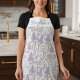 Cook with charm in this personalized apron. Features a seamless floral pattern of pastel peonies, lavender lilacs, and green leaves on light white—ideal for cottagecore kitchen decor. Add any name in an elegant script, machine-washable, perfect lavender gift.