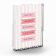 A cute, girly design featuring the self love affirmations "I am kind, I am brave, I am strong, I am capable, I am loved" on a pastel pink and white stripe background.