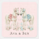 Pastel Pink and Blue Wedding Horses Square Sticker
