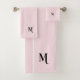 Pastel Pink Black Monogram White Racing Stripes Bath Towel Set