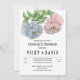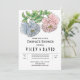 Peony blossoms in pastel pink and blue wedding couple’s shower invitation. It displays peonies in rose quartz and serenity blue colours in watercolor Chinese vintage style.