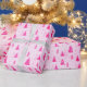 Pastel Pink Christmas Tree Falling Snow elegant Wrapping Paper