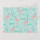 Pastel Pink Flamingos Green Pattern Postcard