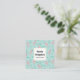 Business cards with a whimsical pattern. Pastel pink flamingos on a light green background. Green lily pads and lotus flowers. Cute tropical vibe.