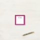Small format square sticky notes designed with a magenta background. A white square with a gold coloured border layered over top. A pastel watercolor flower bouquet at the top. The flowers, leaves and sprigs are pastel pink and green. Created with watercolor paint and digitized. Fresh and summery.