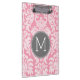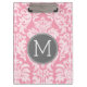 Pastel Pink & Grey Damask Pattern Custom Monogram Clipboard