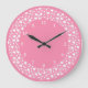 Pastel Pink Heart Polka Dot Pattern Large Clock