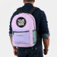 Classic pastel pink blue and lavender purple | Personalized Corporate Logo and Text Modern Business Printed Backpack