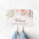 Add a touch of elegance to your entryway with this welcome doormat featuring watercolor flowers, vintage pink roses, and blush pink floral accents in a pretty script design.