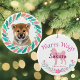 Add a soft festive touch with this soft pastel pink Shiba Inu ornament, personalized with your dog's photo and name. One side features your pet's picture, while the reverse shows a charming silhouette and your dog's name framed with gentle Christmas details. A thoughtful keepsake for dog lovers, perfect for decorating your tree or gifting with love.