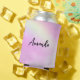 Can cooler with a beautiful background. A pink pastel sky with fluffy clouds and a lemon coloured rainbow. Magical and whimsical design.