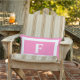 Pastel Pink White Bold Monogram Initial Outdoor Lumbar Pillow