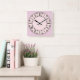 Pastel Pinks Fancy Roman Numeral Face Square Wall Clock
