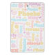 Cute preppy inspired graphic personalized name mini clipboard. This muted soft aqua blue, pink, coral, yellow and dusky pink text typographical design can also be customized with your own short name, currently reads Phoebe. Other names and colours available or contact me for name requests. This original graphic line art featuring up beat smiling faces, butterflies, flowers, rainbow stripes and stars and is designed by Sarah Trett for exclusively for www.mylittleeden.com