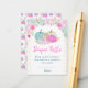 This cute and whimsical watercolor diaper raffle enclosure card features pastel pumpkins in blue, pink and gold, floral arrangements and gold confetti. The text combines handwritten script and sans serif fonts for a stylish and modern look. This is perfect for an autumn fall baby shower.