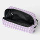 A pretty toiletry bag with a pastel purple and white gingham pattern. Perfect for travel and more. You can adjust this pattern to make it just right for you. Enlarge it or reduce it and use the rotate tool to make it a diagonal pattern if you prefer. Add your name, initial, monogram or any text to personalize. It's a classic country style for spring and summer!