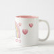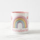 Pastel Rainbow and Hearts with Pink Custom Name Two-Tone Coffee Mug
