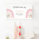 Cute kid's birthday party welcome banner featuring a hand drawn illustration of pastel rainbows with stars around. Perfect for a girl's birthday decor.
