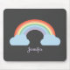 A black mouse pad with a pastel cute rainbow and its two blue clouds for a romantic birthday gift or a girly home decoration!