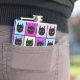 Cute and funky black cat silhouette faces on a multicoloured pastel rainbow square background. This cartoon cat pattern is very hippie style and will make a great gift for a cat lover!