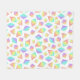 A magical pattern of rainbow pastel crystals and gems arranged on a watercolour paper background. The pink, purple, blue and yellow gems are outlined in white.