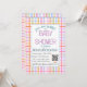 Celebrate a perfect new addition with these charming plaid baby shower invitations. The colorful plaid design creates a vibe of fun and whimsy. The customizable text is a mix of modern and script typography, in fun colors that reflect the bold framing and pattern on the back.
