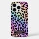 Customize this colorful pastel rainbow leopard print iPhone 16 pro case with your your name in a trendy modern CAP font in peachy pink on black. It's so chic!