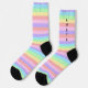 Cute pastel coloured rainbow striped socks. Both socks have customisable text where you can add your own name. NOTE: when you change the text on one sock, it will also change the text on the other