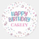 Pastel Rainbow Unicorn Happy Birthday, Any Age Classic Round Sticker