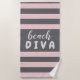 Pastel Red Stripes with Custom Text Beach DIVA Towel