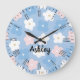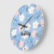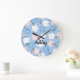 Whimsical white, blue and pink retro style flowers on light blue background with roman numeral clock face and customizable text