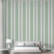Pastel Sage Green White Stripes Pattern Wallpaper