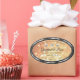 Make a lasting impression with this luxury and glamourous product label design featuring a luminous shimmery pastel salmon and gold glitter.