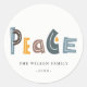 Pastel Scandi Yellow Grey Text Peace Christmas Classic Round Sticker