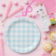 Pastel Sky Blue Gingham Plaid Pattern Paper Plate