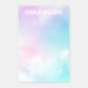 Sticky notes with your name or custom text in a bold sans serif font on a pastel coloured sky background with clouds.